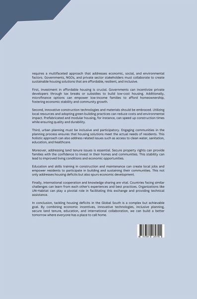 This title is clear, action-oriented, and geographically specific. Here's a breakdown and potential directions for a 150-word exploration:Breakdown:-Building a Better Tomorrow: This evokes a sense of progress and highlights the long-term benefits of addressing housing shortages.-Tackling Housing Deficits: This clarifies the focus - exploring solutions to the lack of adequate housing in developing countries.-Global South: This specifies the context - the challenges and opportunities related to housing deficits in low- and middle-income countries.The piece could delve deeper into the scope of…mehr