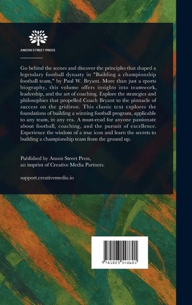 Go behind the scenes and discover the principles that shaped a legendary football dynasty in "Building a championship football team," by Paul W. Bryant. More than just a sports biography, this volume offers insights into teamwork, leadership, and the art of coaching. Explore the strategies and philosophies that propelled Coach Bryant to the pinnacle of success on the gridiron. This classic text explores the foundations of building a winning football program, applicable to any team, in any era. A must-read for anyone passionate about football, coaching, and the pursuit of excellence. Experience…mehr