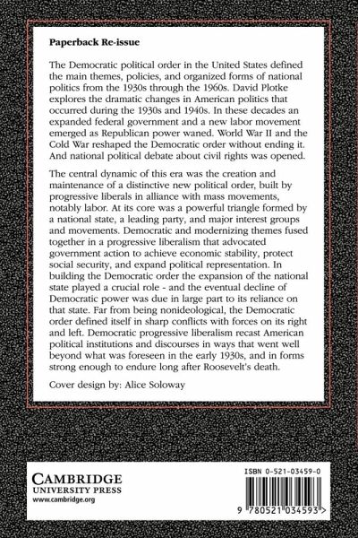 The Democratic political order in the United States defined the main themes, policies, and organized forms of national politics from the 1930s through the 1960s. David Plotke explores the dramatic changes in American politics that occurred during the 1930s and 1940s. In these decades an expanded federal government and a new labor movement emerged as Republican power waned. World War II and the Cold War reshaped the Democratic order without ending it. And national political debate about civil rights was opened. The central dynamic of this era was the creation and maintenance of a distinctive new political order, built by progressive liberals in alliance with mass movements, notably labor. At its core was a powerful triangle formed by a national state, a leading party, and major interest groups and movements. Democratic and modernizing themes fused together in a progressive liberalism that advocated government action to achieve economic stability, protect social security, and expand political representation. In building the Democratic order the expansion of the national state played a crucial role - and the eventual decline of Democratic power was due in large part to its reliance on that state. Far from being nonideological, the Democratic order defined itself in sharp conflicts with forces on its right and left. Democratic progressive liberalism recast American political institutions and discourses in ways that went well beyond what was foreseen in the early 1930s, and in forms strong enough to endure long after Roosevelt's death.
