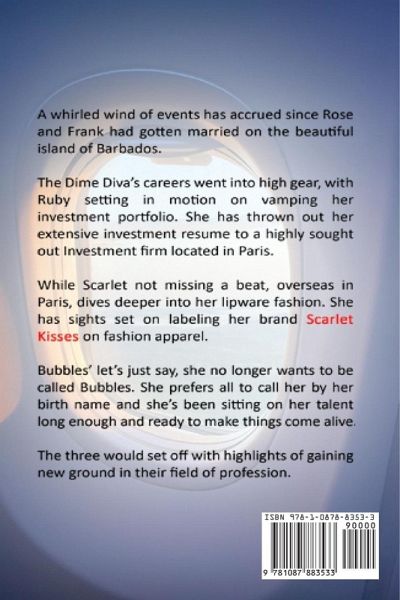 Building A Dynasty Rose's Story! Vol IIIA whirled wind of events has accrued since Rose and Frank had gotten married on the beautiful island of Barbados.The Dime Diva's careers went into high gear, with Ruby setting in motion on vamping her investment portfolio. She has thrown out her extensive investment resume to a highly sought out Investment firm located in Paris.While Scarlet not missing a beat, overseas in Paris, dives deeper into her lipware fashion. She has sights set on labeling her brand Scarlet Kisses on fashion apparel. Bubbles' let's just say, she no longer wants to be called Bubbles. She prefers all to call her by her birth name and she's been sitting on her talent long enough and ready to make things come alive. The three would set off with highlights of gaining new ground in their field of profession.