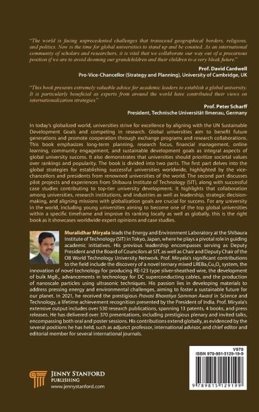 The book emphasizes long-term planning, research focus, financial management, online learning, community engagement, and sustainable development goals as integral aspects of global university success.