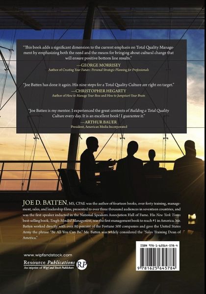 Endorsements: "This book adds a significant dimension to the current emphasis on Total Quality Management by emphasizing both the need and the means for bringing about cultural change that will ensure positive bottom line results." --George Morrisey, author of Creating Your Future: Personal Strategic Planning for Professionals "Joe Batten has done it again. His nine steps for a Total Quality Culture are right on target." --Christopher Hegarty, author of How to Manage Your Boss and How to Jumpstart Your Brain "Joe Batten is my mentor. I experienced the great contents opf Building a Total Quality Culture every day. It is an excellent book! I guarantee it." --Arthur Bauer, President, American Media Incorporated