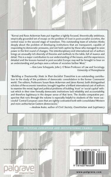 "Kornai and Rose-Ackerman have put together a tightly focused, theoretically ambitious, empirically grounded set of essays on the problem of trust in post-socialist societies, the central issue in the second stage of transition. This outstanding team of scholars thinks deeply about the problem of developing institutions that are transparent, capable of responding to democratic pressures, and not held captive by those who managed to seize power in the first round of changes. The interdisciplinary and international set of authors brings an unusually richdiversity of theories and methods to the table, full of nuance and detail. This is a major contribution to our understanding of the issues, and the experiences detailed and the lessons learned in post-socialist Europe may well be brought to bear on an understanding and perhaps even a reform of societies farther West." - Kim Lane Scheppele, John J. O'Brien Professor of Law and Sociology, University of Pennsylvania