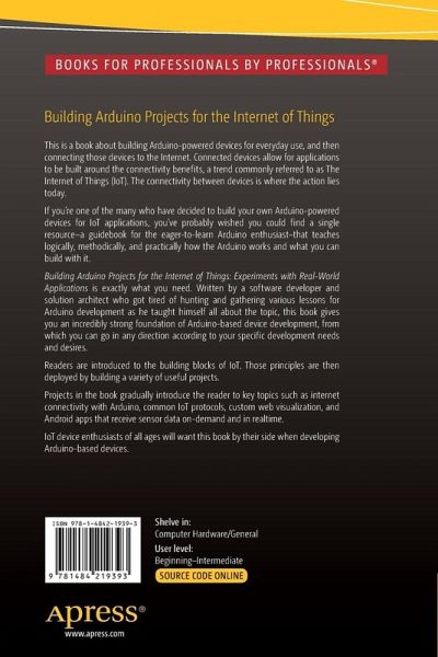 Written by a software developer and solution architect who got tired of hunting and gathering various lessons for Arduino development as he taught himself all about the topic. For Arduino enthusiasts, this book not only opens up the world of IoT applications, you will also learn many techniques that likely would not be obvious if not for experience with such a diverse group of applications