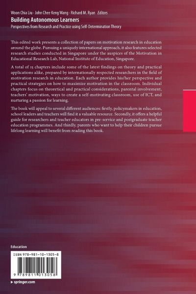 Chapter 1 Understanding Motivation in Education: Theoretical and Practical considerations.- Chapter 2 Optimizing students' Motivation in the era of Testing and Pressure: A Self-Determination Theory Perspective.- Chapter 3 The Dualistic model of Passion: Theory, research, and implications for the field of Education.- Chapter 4 Towards a more systematic study of the dark side of Student Motivation: Antecedents and consequences of teachers' controlling behaviours.- Chapter 5 How can we create better learning contexts for children? Promoting students' autonomous motivation as a way to foster enhanced educational outcomes.- Chapter 6 Teachers' motivation in the classroom.- Chapter 7 Autonomy-Supportive teaching: What it is, How to do it.- Chapter 8 An instruction sequence promoting autonomous motivation for coping with challenging learning subjects.- Chapter 9 Parental involvement and Children's academic motivation and achievement.- Chapter 10 Parental influence and students' outcomes and well-being.- Chapter 11 Creating an Autonomy-Supportive Physical Education (PE) learning environment.- Chapter 12 Can being Autonomy-Supportive in teaching improve students' self-regulation and performance? Chapter 13 Translating motivational theory into application of Information Technology in the classroom.- Chapter 14 Focus on competing for performance or mastering new knowledge? Insights from discovering the relations between classroom goal structures and students' learning in Singapore secondary schools.- Chapter 15 Promoting Mastery-Approach goals to support the success of the 'Teach Less Learn More' educational initiatives.