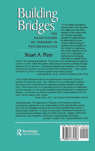 In Building Bridges, Stuart A. Pizer gives much-needed recognition to the central role of negotiation in the analytic relationship and in the therapeutic process. Building on a Winnicottian perspective that comprehends paradox as the condition for preserving an intrapsychic and relational "potential space," Pizer explores how the straddling of paradox requires an ongoing process of negotiation and demonstrates how such negotiation articulates the creative potential within the potential space of analysis. Following careful review of Winnicott's perspective on paradox-via the pairings of privacy and interrelatedness, isolation and interdependence, ruthlessness and concern, and the notion of transitional phenomena-Pizer locates these elemental paradoxes within the negotiations of an analytic process. Together, he observes, analyst and patient negotiate the boundaries, potentials, limits, tonalities, resistances, and meanings that determine the course of their clinical dialogue. Elaborating on the theme of a multiply constituted, "distributed" self, Pizer presents a model for the tolerance of paradox as a developmental achievement related to ways in which caretakers function as "transitional mirrors." He then explores the impact of trauma and dissociation on the child's ability to negotiate paradox and clarifies how negotiation of paradox differs from negotiation of conflict. Pizer also broadens the scope of his study by turning to negotiation theory and practices in the disciplines of law, diplomacy, and dispute resolution. Enlivened by numerous clinical vignettes and a richly detailed chronicle of an analytic case from its earliest negotiations to termination, Building Bridges adds a significant dimension to theoretical understanding and clinical practice. It is altogether a psychoanalytic work of our time.