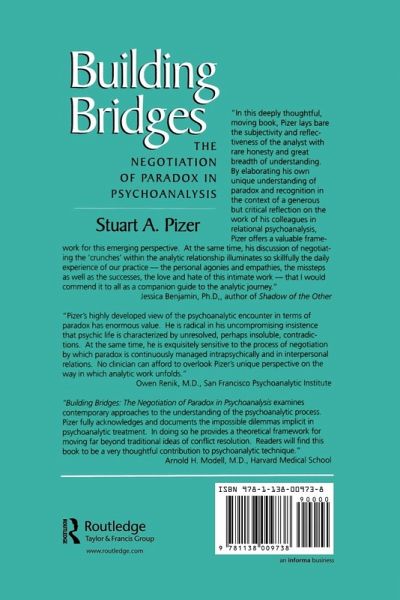 In Building Bridges, Stuart A. Pizer gives much-needed recognition to the central role of negotiation in the analytic relationship and in the therapeutic process. Building on a Winnicottian perspective that comprehends paradox as the condition for preserving an intrapsychic and relational "potential space," Pizer explores how the straddling of paradox requires an ongoing process of negotiation and demonstrates how such negotiation articulates the creative potential within the potential space of analysis. Following careful review of Winnicott's perspective on paradox-via the pairings of privacy and interrelatedness, isolation and interdependence, ruthlessness and concern, and the notion of transitional phenomena-Pizer locates these elemental paradoxes within the negotiations of an analytic process. Together, he observes, analyst and patient negotiate the boundaries, potentials, limits, tonalities, resistances, and meanings that determine the course of their clinical dialogue. Elaborating on the theme of a multiply constituted, "distributed" self, Pizer presents a model for the tolerance of paradox as a developmental achievement related to ways in which caretakers function as "transitional mirrors." He then explores the impact of trauma and dissociation on the child's ability to negotiate paradox and clarifies how negotiation of paradox differs from negotiation of conflict. Pizer also broadens the scope of his study by turning to negotiation theory and practices in the disciplines of law, diplomacy, and dispute resolution. Enlivened by numerous clinical vignettes and a richly detailed chronicle of an analytic case from its earliest negotiations to termination, Building Bridges adds a significant dimension to theoretical understanding and clinical practice. It is altogether a psychoanalytic work of our time.