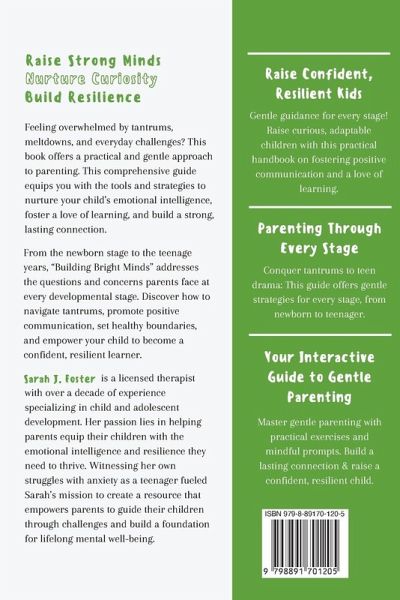 Unleash the Confidence, Resilience, and Curiosity Within Your Child! Building Bright Minds goes beyond behavior management. It's your comprehensive guide to raising emotionally healthy children who are curious, resilient, and lifelong learners, from newborn to teenager. Empower yourself with:Age-Appropriate Strategies: Navigate every stage of development with targeted guidance, from soothing a newborn to supporting a teenager facing social pressures. Effective Communication Techniques: Learn active listening, validate your child's emotions, and set clear boundaries with respect and understanding. The Gentle Parenting Advantage: Discover how empathy, respect, and positive discipline build emotional intelligence in your child. Actionable Tools for Everyday Challenges: Conquer common hurdles like tantrums, build cooperation, and overcome learning struggles with practical strategies and easy-to-implement tips. Building a Strong Bond: Through mindful communication and empathy, foster a deep emotional connection with your child. Real-Life Inspiration: Learn from relatable case studies and see gentle parenting in action. Mindful Journaling Prompts: Gain deeper insights into your parenting journey and celebrate your personal growth. Building Bright Minds is more than just a book, it's your interactive toolkit for raising happy, confident, and resilient children.