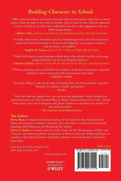 "Offers American parents and teachers precisely what we need and so sorely lack-- a moral vision of how we ought to live with one another and the heart of what 'character education' is meant to teach us: an ethics that is affirmed in our day-to-day engagement with our fellow human beings." --Robert Coles, professor of psychiatry and medical humanities, Harvard University "A timely, well-written, immensely practical, breakthrough book that will awaken our minds and hearts and remind us of our moral obligation to our greatest resource and our future: our children." --Stephen R. Covey, author of The 7 Habits of Highly Effective People "Packed with practical and inspiring wisdom about what schools, families, and young people themselves can do to build good character." --Thomas Lickona, director, Center for the 4th and 5th Rs (Respect and Responsibility) "Without preaching, Ryan and Bohlin have written a book that is important, enjoyable reading for anyone concerned with contemporary education." --Publisher's Weekly "For those willing to take up the task of teaching ethics, the book provides a practical blueprint for teachers, schools, and parents." --Booklist "After the book has inspired you, you can mine the appendices, which include such practical treasures as 'One Hundred Ways to Bring Character Education to Life, ' sample lesson plans, and a list of programs and phone numbers to call when your school is in dire need of civility." --The American School Board Journal