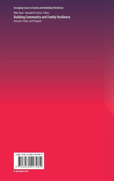 This interdisciplinary volume examines the relationship between community resilience and family resilience, identifying contributing factors on the micro-, meso-, and macro-level. Scholars and practitioners focus on how community-level policies and programs facilitate the distribution of resources, assets, and opportunities that provide valuable assistance to families who are struggling or in crisis due to economic hardship, mental illness, and the effects of natural and human made disasters. Additionally, representatives of local government and community agencies on the "front lines" of developing policies and programs to assist families provide valuable context for understanding the ways communities provide environments that encourage and nurture family resilience.