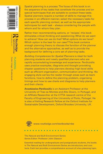 Spatial planning is a process. The focus of this book is on the sequence of key tasks that constitute the process and on special techniques that are suitable to conduct these tasks. Spatial planners require a number of skills to manage this process in an efficient manner, select the necessary tasks for each specific planning context, as well as the appropriate techniques for each task - always considering the people with whom and for whom they plan. Rather than recommending options, or 'recipes', this book stimulates critical thinking and questioning: What do we want to achieve? How can we do that? What options do we have? Which option is the best for our case? This book contains enough planning theory to discuss the function of the planner and the alternative approaches, as well as to provide the background for defining a core set of planning tasks. Building Competences for Spatial Planners is ideal for both planning students and newly qualified planners who are rapidly accumulating knowledge and experience. Perdicoulis uses practice examples, diagrams and thought provoking chapter questions to help planners develop high-level skills such as efficient organization, communication and thinking. His engaging style carries the reader through areas such as team functions, how to define the planning problem, organizing timings and how to use charts and diagrams to help planners and their clients. More details at http: www.tasso.utad.pt