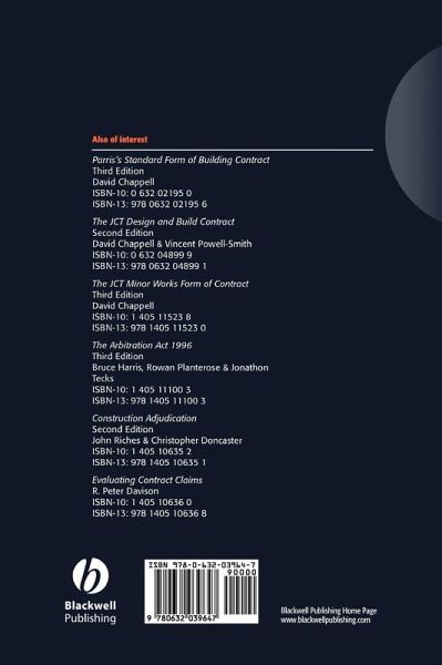 For the new edition all entries have been reconsidered and updated in light of case law and legislation and the book has been substantially enlarged since the last edition ten years ago. There are now over 800 separate entries A wide range of contracts has been referenced, including JCT 98, IFC 98, MW 98, WCD 98, PCC 98, MC 98, ACA 3, GC/Works/1 (1998), NEC, NSC/C, DOM/1, DOM/2 as well as topics such as adjudication, arbitration and the Civil Procedure Rules.