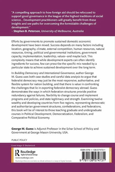 Efforts by governments to promote sustained domestic economic development have been mixed. Success depends on many factors including location, geography, climate, external competition, human resources, natural resources, timing, political and governmental institutions, government capacity, implementation, leadership, values-and maybe luck. This complexity means that while development experts can often identify ingredients for success, few can prescribe the specific mix needed by a particular state to achieve sustained development over the long term. In Building Democracy and International Governance, author George M. Guess uses both case studies and careful data analysis to argue that federalist democracy may just be the most responsive, authoritative, and flexible system for nation building, and that there is value in confronting the challenges that lie in exporting federalist democracy abroad. Guess demonstrates the ways in which federation structures provide positive redundancy against failures, flexibility to change course and implement programs and policies, and state legitimacy and strength. Examining twelve wealthy and developing countries from five regions, representing democratic and authoritarian government structures, confederations, and federations, this book will be of interest to those teaching graduate and undergraduate courses in Political Development, Democratization, Federalism, and Comparative Political Economy.