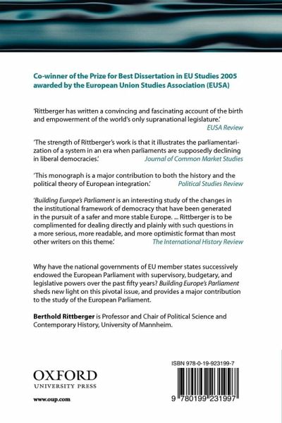 Why have the national governments of EU member states successively endowed the European Parliament with supervisory, budgetary, and legislative powers over the past fifty years? Building Europe's Parliament sheds new light on this pivotal issue, and provides a major contribution to the study of the European Parliament. Rittberger develops a theory of delegation to representative institutions in international politics which combines elements of democratic theory and different strands of institutionalist theory. To test the plausibility of his theory, Rittberger draws on extensive archival material and offers theory-guided, in-depth case studies of three landmark decisions in the history of the European Parliament: the creation of the Common Assembly of the ECSC in 1951 and the concomitant acquisition of supervisory powers vis-à-vis the quasi-executive High Authority; the delegation of budgetary powers following the signing of the Treaty of Luxembourg in 1970; and the delegation of legislative powers resulting from the adoption of the Single European Act signed in 1986. This is followed by the charting of more recent key developments, culminating in the adoption of the Constitutional Treaty in 2004. The book provides a welcome addition to the literature on institutional design by reflecting on the conditions under which governments opt for the creation and empowerment of parliamentary institutions in international politics. It also makes a valuable contribution to the application of democratic theory to the study of the European Union by demonstrating that political elites shared the view that the new supranational polity which emerged from the debris of World War II suffered from 'democratic deficit' since its inception, thus disproving the claim that the lamented 'democratic deficit' is a recent phenomenon.