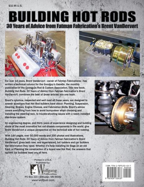 Building Hot Rods by Brent Vandervort - owner of Fatman Fabrications - combines fifteen years of technical columns written by Brent for the Goodguys Gazette. The columns are designed to answer questions that Hot Rod builders have regarding: Planning, Suspension, Steering, Brakes, Engine Choices, and Fabrication Skills - Brent's advice covers everything from how to avoid bump-steer when choosing and installing the steering rack, to trouble-shooting issues with a newly installed disc-brake system. An engineering degree, and thirty-plus years of experience designing and building some of the most innovative hot rod chassis components in the world, give Brent Vandervort a unique perspective on the technical side of hot rodding. With 144 pages, over 50,000 words and 200 photos and illustrations, Building Hot Rods: 30 Years of Advice from Fatman Fabrication's Brent VanDervort, gives both new, and experienced, hot rodders and car builders the information they need. Whether it's help installing Air Bags on an old Ford, or planning the construction of a brand new Hot Rod, the answers that current car builders need are all here.