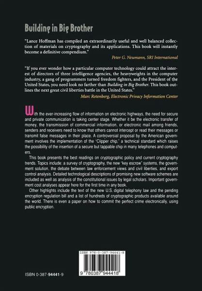 The announcement of the Clipper chip by the U.S. Government in April 1993 set off a frenzy of discussions about cryptography policy in the technological community. The shock waves from it ultimately included front page treatment in The New York Times, repeated questions to the Vice President, creation of several new newsgroups on the Internet, and some very productive public discussions about striking the balance between national security, law enforcement, and civil liberties. We still don't have good answers for some of the questions that have been raised. As the Global Information Infrastructure is being built, we are writing portions of the Constitution for Cyberspace. I've been fortunate to have a front row seat and to share much of this with my students. The original reading and selection of materials was made by the first cohort of students_ in The George Washington University Accel erated Master of Science Program in Telecommunications and Com puters at the Ashburn, Virginia campus. They worked many long hours-reading, debating, and selecting materials for this book. In addition, Bob Patton spent a great deal of time scanning and editing the material. Nestor Torres prepared the index. And Harish Nalinak shan provided an enormous amount of technical and administrative assistance and kept the project on track as new developments took place in the debate and new papers and legislation reflected these. As with most readings books, some of the selections cover similar material. We have tried to hold this duplication to an acceptable level.