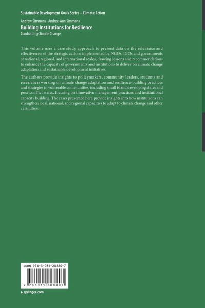 The authors provide insights to policymakers, community leaders, students and researchers working on climate change adaptation and resilience-building practices and strategies in vulnerable communities, including small island developing states and post-conflict states, focusing on innovative management practices and institutional capacity building. The cases presented here provide insights into how institutions can strengthen local, national, and regional capacities to adapt to climate change and other calamities.
