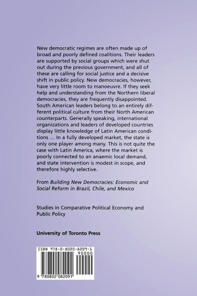 In Building New Democracies Michel Duquette analyses the main public policies of Brazil, Chile, and Mexico to explore examples of how countries make the transition from an authoritarian regime to a democratic society. The main objective of the book is to follow the process of policy formation in very young democracies. Duquette isolates the specific problems that surround decision-making in a transitional government, showing how legislating structural change does not guarantee democratic success. He offers a general model of domestic and international policy-making as a response to the problems of achieving fundamental political reform. The effectiveness of public policies depends on factors including competing ideologies, inexperienced political leaders, rising political organizations, rule by coalition parties, and the influence of local politicians and technocrats. It is with the alliance of grassroots organizations and autonomous institutions, Duquette believes, that social and economic exclusion will be overcome on a national level. Building New Democracies is primarily theoretical in its analysis, but integrates many recent empirical findings from a wide body of international and Latin American research, including the author's own field work. The methodology Duquette employs is genuinely comparative and not merely a juxtaposition of case studies. His approach and conclusions can be applied to a number of disciplines, including political science, economics, sociology, and Latin American studies.