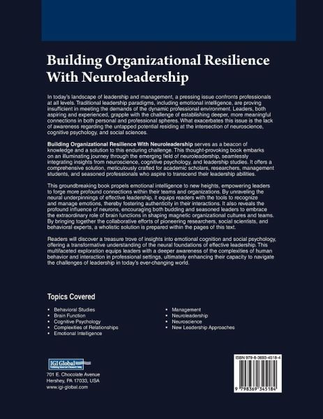 In today's landscape of leadership and management, a pressing issue confronts professionals at all levels. Traditional leadership paradigms, including emotional intelligence, are proving insufficient in meeting the demands of the dynamic professional environment. Leaders, both aspiring and experienced, grapple with the challenge of establishing deeper, more meaningful connections in both personal and professional spheres. What exacerbates this issue is the lack of awareness regarding the untapped potential residing at the intersection of neuroscience, cognitive psychology, and social sciences. Building Organizational Resilience With Neuroleadership serves as a beacon of knowledge and a solution to this enduring challenge. This thought-provoking book embarks on an illuminating journey through the emerging field of neuroleadership, seamlessly integrating insights from neuroscience, cognitive psychology, and leadership studies. It offers a comprehensive solution, meticulously crafted for academic scholars, researchers, management students, and seasoned professionals who aspire to transcend their leadership abilities. This groundbreaking book propels emotional intelligence to new heights, empowering leaders to forge more profound connections within their teams and organizations. By unraveling the neural underpinnings of effective leadership, it equips readers with the tools to recognize and manage emotions, thereby fostering authenticity in their interactions. It also reveals the profound influence of neurons, encouraging both budding and seasoned leaders to embrace the extraordinary role of brain functions in shaping magnetic organizational cultures and teams. By bringing together the collaborative efforts of pioneering researchers, social scientists, and behavioral experts, a wholistic solution is prepared within the pages of this text.