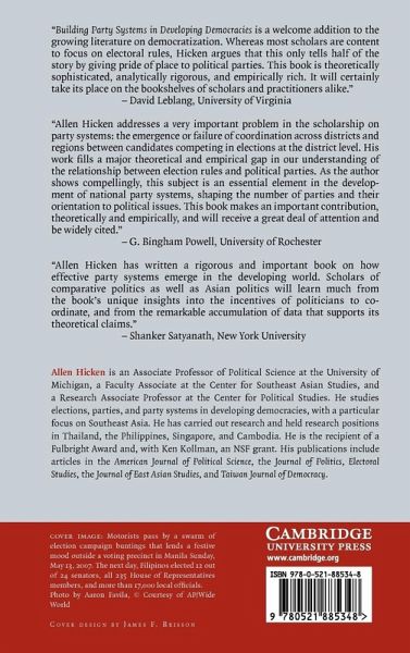 This book addresses the question of why a party system with a modest number of nationally oriented political parties emerges in some democracies but not others. The number of parties and nationalization are the product of coordination between voters, candidates, and party leaders within local electoral districts and coordination among candidates and elites across districts. Candidates and voters can do and do coordinate locally in response to electoral incentives, but coordination across districts, or aggregation, often fails in developing democracies. A key contribution of this book is the development and testing of a theory of aggregation incentives that focuses on the payoff to being a large party and the probability of capturing that payoff. The book relies on in-depth case studies of Thailand and the Philippines, and on large-n analysis to establish its arguments.