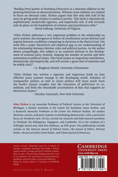 This book addresses the question of why a party system with a modest number of nationally oriented political parties emerges in some democracies but not others. The number of parties and nationalization are the product of coordination between voters, candidates, and party leaders within local electoral districts and coordination among candidates and elites across districts. Candidates and voters can do and do coordinate locally in response to electoral incentives, but coordination across districts, or aggregation, often fails in developing democracies. A key contribution of this book is the development and testing of a theory of aggregation incentives that focuses on the payoff to being a large party and the probability of capturing that payoff. The book relies on in-depth case studies of Thailand and the Philippines, and on large-n analysis to establish its arguments.