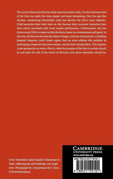 The current financial crisis has deep macroeconomic roots, but the dominant view of the firm has made the crisis deeper and more devastating. Over the past few decades, maximizing shareholder value has become the main objective of the firm. Chief executives have been keen on this objective because their economic incentives have been clearly associated with stock market performance. Unfortunately, this has driven many CEOs to make terrible decisions based on short-termism and greed. In this way, the firm has become the object of anger, criticism and cynicism. In Building Respected Companies, Jordi Canals argues that we must address this problem by developing companies that serve society, not just their shareholders. This requires a new perspective of what a firm is, what the purpose of the firm in society should be and what the role of the board of directors and senior executives should be.