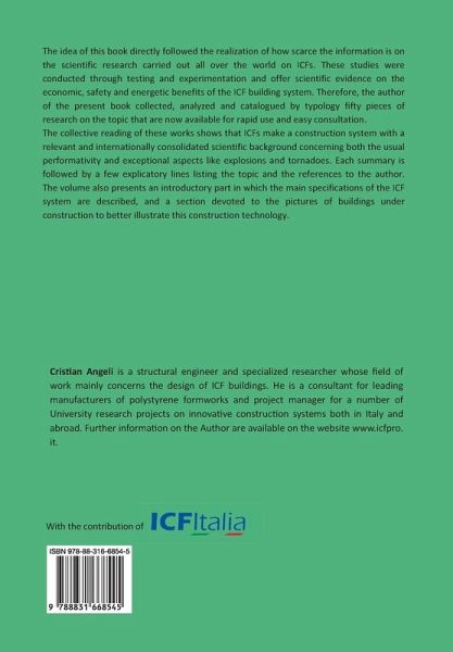 The idea of this book directly followed the realization of how scarce the information is on the scientific research carried out all over the world on ICFs (Insulating Concrete Forms). These studies were conducted through testing and experimentation and offer scientific evidence on the economic, safety and energetic benefits of the ICF construction system. Therefore, the author of the present book collected, analyzed and catalogued by typology fifty pieces of research that are now available for rapide use and easy consultation. The collective reading of these works shows that ICFs make a construction system with a relevant and internationally consolidated scientific background concerning both the usual performativity and exceptional aspects like explosions and tornadoes. Each summary is followed by a few explicatory lines listing the topic and the references to the author. The volume also presents an introductory part in which the main specifications of the ICF system are described, and a section devoted to the pictures of buildings under construction to better illustrate this construction technology.