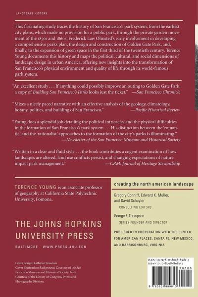 In 1865, when San Francisco's Daily Evening Bulletin asked its readers if it were not time for the city to finally establish a public park, residents had only private gardens and small urban squares where they could retreat from urban crowding, noise, and filth. Five short years later, city supervisors approved the creation of Golden Gate Park, the second largest urban park in America. Over the next sixty years, and particularly after 1900, a network of smaller parks and parkways was built, turning San Francisco into one of the nation's greenest cities. In Building San Francisco's Parks, 1850-1930, Terence Young traces the history of San Francisco's park system, from the earliest city plans, which made no provision for a public park, through the private garden movement of the 1850s and 1860, Frederick Law Olmsted's early involvement in developing a comprehensive parks plan, the design and construction of Golden Gate Park, and finally to the expansion of green space in the first third of the twentieth century. Young documents this history in terms of the four social ideals that guided America's urban park advocates and planners in this period: public health, prosperity, social coherence, and democratic equality. He also differentiates between two periods in the history of American park building, each defined by a distinctive attitude towards "improving" nature: the romantic approach, which prevailed from the 1860s to the 1880s, emphasized the beauty of nature, while the rationalistic approach, dominant from the 1880s to the 1920s, saw nature as the best setting for uplifting activities such as athletics and education. Building San Francisco's Parks, 1850-1930 maps the political, cultural, and social dimensions of landscape design in urban America and offers new insights into the transformation of San Francisco's physical environment and quality of life through its world-famous park system.