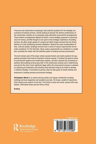 This book provides the reader with the definitive guide to building services procurement. Each stage within the procurement process is explored by explaining its importance and showing what needsto be done to develop a cohesive strategy.