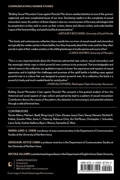 Chapter 1: Stigma and the "Weinstein Effect": A Comparative Analysis of Sexual Misconduct Allegations against Donald J. Trump and Harvey Weinstein in News Media Chapter 2: Cliff or Cosby?: The Jury and 'Happy Objects' in the 2017 Trial of Commonwealth vs. William Henry Cosby, Jr. Chapter 3: Won't Someone Think of the Perpetrator?!:The Narrative Framework of the Accuser Killjoy in the Age of #MeToo Chapter 4: Put Me In, Coach: Co-Building the Institutional Bias by Universities and Media in Sexual Misconduct Cases Involving Student-Athletes Chapter 5: From "He Said, She Said" to "He Said, They Said": Corroboration in Sexual Misconduct Cases Chapter 6: Eroding Social Capital: Narrative Transformations of Al Franken Chapter 7: To Apologize, or Not to Apologize: Accounts of the Accused in Sexual Misconduct Cases Chapter 8: Beyond Trauma-Informed: A Qualitative-Research Approach to Sexual Misconduct Cases