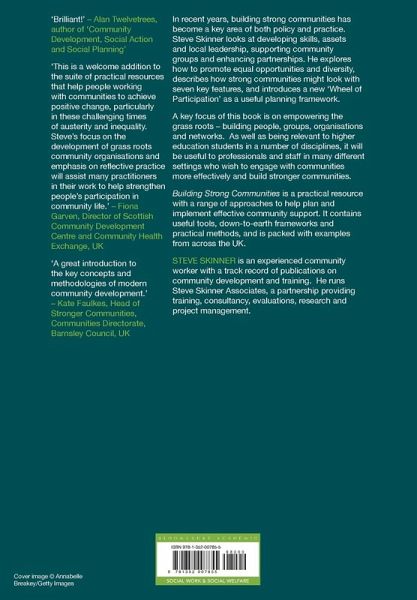 Building Strong Communities is an introductory textbook that contains practical tools, down-to-earth frameworks and useful methods, a valuable resource for working with communities. A key focus of the book is on empowering the grass roots - building people, groups, organisations, partnerships and networks. In particular, it describes how strong communities might look with seven key features and introduces a new 'Wheel of Participation' as a useful planning framework. Written by a practitioner for both students and other practitioners, the book combines theory and practice, draws on recent research and is packed with practical examples. This is key reading for Community Studies, Social Work or Youth and Community programmes, and will also be useful in many different settings, such as regeneration, local government, health and housing.