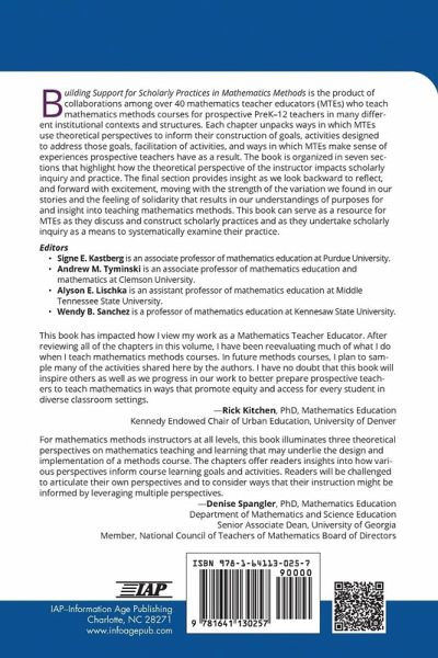 Building Support for Scholarly Practices in Mathematics Methods is the product of collaborations among over 40 mathematics teacher educators (MTEs) who teach mathematics methods courses for prospective PreK-12 teachers in many different institutional contexts and structures. Each chapter unpacks ways in which MTEs use theoretical perspectives to inform their construction of goals, activities designed to address those goals, facilitation of activities, and ways in which MTEs make sense of experiences prospective teachers have as a result. The book is organized in seven sections that highlight how the theoretical perspective of the instructor impacts scholarly inquiry and practice. The final section provides insight as we look backward to reflect, and forward with excitement, moving with the strength of the variation we found in our stories and the feeling of solidarity that results in our understandings of purposes for and insight into teaching mathematics methods. This book can serve as a resource for MTEs as they discuss and construct scholarly practices and as they undertake scholarly inquiry as a means to systematically examine their practice.