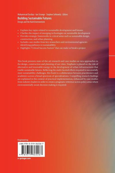 This book presents state-of-the-art research and case studies on new approaches to the design, construction and planning of our cities. Emphasis is placed on the role of alternative and renewable energy in the development of urban infrastructures that enable sustainable futures. Reflecting the multi-faceted efforts required to successfully meet sustainability challenges, this book is a collaboration between practitioners and academics across a broad spectrum of specializations. Compelling research findings are explained in the context of practical implementation, enhanced by case studies from industry leaders in order to create a pragmatic reference across policy areas where environmentally aware decision making is required.