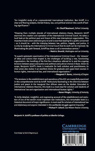 The International Criminal Court (ICC) is the first and only standing international court capable of prosecuting humanity's worst crimes: genocide, war crimes, and crimes against humanity. It faces huge obstacles. It has no police force; it pursues investigations in areas of tremendous turmoil, conflict, and death; it is charged both with trying suspects and with aiding their victims; and it seeks to combine divergent legal traditions in an entirely new international legal mechanism. International law advocates sought to establish a standing international criminal court for more than 150 years. Other, temporary, single-purpose criminal tribunals, truth commissions, and special courts have come and gone, but the ICC is the only permanent inheritor of the Nuremberg legacy. In Building the International Criminal Court, Oberlin College Professor of Politics Ben Schiff analyzes the International Criminal Court, melding historical perspective, international relations theories, and observers' insights to explain the Court's origins, creation, innovations, dynamics, and operational challenges.