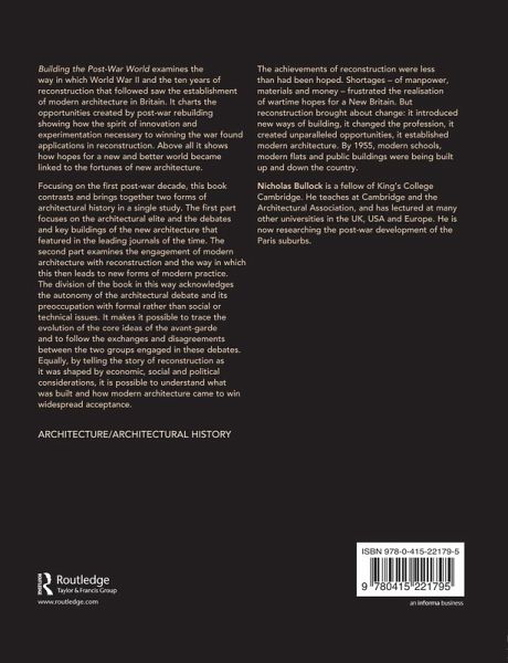 Building the Post-war World examines the way in which World War II and the ten years of reconstruction that followed saw the establishment of modern architecture in Britain. It charts the opportunities created by post-war rebuilding showing how the spirit of innovation and experimentation necessary to winning the war found applications in reconstruction. Above all it shows how hopes for a new and better world became linked to the fortunes of new architecture.