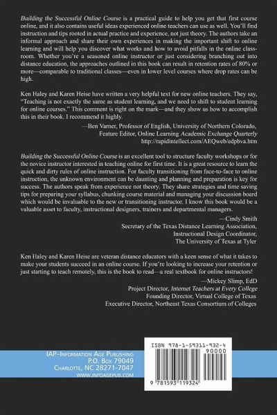 This book will be a practical guide to developing and implementing online courses. It is based on a model now in use at Paris Junior College in Paris, TX which has often resulted in retention rates of over 90%. It will be a comprehensive practitioner's guide including information on retention and multimedia support. This book will be a guide to anyone who may wish to teach online in any subject area at any level. The book provides actual examples of problems and solutions concerning online courses and also includes examples of supporting documents. Through a supporting Web site, the book will include actual examples of multimedia support now in use The book might also be used in graduate classes as a curriculum development guide. Readers would use the book as a guide as they actually create online courses. This would take most of the guess work out of course creation and provide a solid foundation for distance learning programs. The book provides a simple yet effective approach to online learning. It uses a model that has been proven to be effective with retention rates to support the contention. It provides information on a retention study and multimedia support as well, two areas that have not been addressed very often to this point.