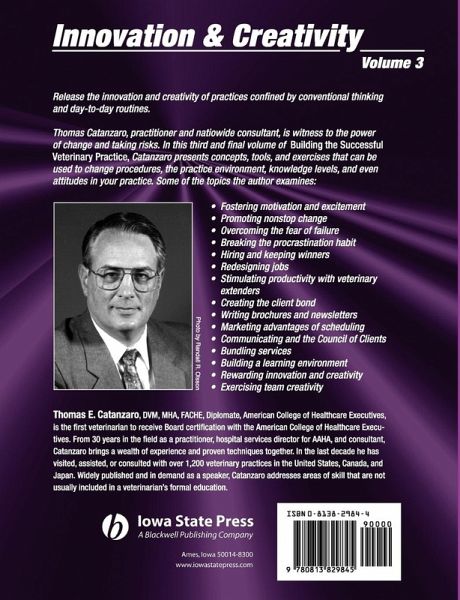 Release the innovation and creativity of practices confined by conventional thinking and day-to-day routines. Thomas Catanzaro, practitioner and nationwide consultant, is witness to the power of change and taking risks. In this third and final volume of Building the Successful Veterinary Practice, Catanzaro presents concepts, tools, and exercises that can be used to change procedures, the practice environment, knowledge levels, and even attitudes in your practice. Some of the topics the author examines: * Fostering motivational and excitement * Promoting nonstop change * Overcoming the fear of failure * Breaking the procrastination habit * Hiring and keeping winners * Redesigning jobs * Stimulating productivity with veterinary extenders * Creating the client bond * Writing brochures and newsletters * Marketing advantages of scheduling * Communicating and the Council of Clients * Bundling services * Building a learning environment * Rewarding innovation and creativity * Exercising team creativity