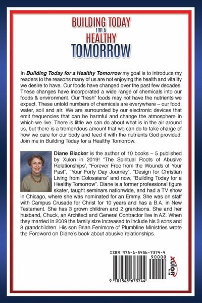 In Building Today for a Healthy Tomorrow my goal is to introduce my readers to the reasons many of us are not enjoying the health and vitality we desire to have. Our foods have changed over the past few decades. These changes have incorporated a wide range of chemicals into our foods & environment. Our "fresh" foods may not have the nutrients we expect. These untold numbers of chemicals are everywhere - our food, water, soil and air. We are surrounded by our electronic devices that emit frequencies that can be harmful and change the atmosphere in which we live. There is little we can do about what is in the air around us, but there is a tremendous amount that we can do to take charge of how we care for our body and feed it with the nutrients God provided. Join me in Building Today for a Healthy Tomorrow. Diane Blacker is the author of 10 books - 5 published by Xulon in 2019! "The Spiritual Roots of Abusive Relationships', "Forever Free from the Wounds of Your Past", "Your Forty Day Journey", "Design for Christian Living from Colossians" and now, "Building Today for a Healthy Tomorrow". Diane is a former professional figure skater, taught seminars nationwide, and had a TV show in Chicago, where she was nominated for an Emmy. She was on staff with Campus Crusade for Christ for 10 years and has a B.A. in New Testament. She has 3 grown children and 2 grandsons. She and her husband, Chuck, an Architect and General Contractor live in AZ. When they married in 2009 the family size increased to include his 3 sons and 8 grandchildren. His son Brian Fenimore of Plumbline Ministries wrote the Foreword on Diane's book about abusive relationships.