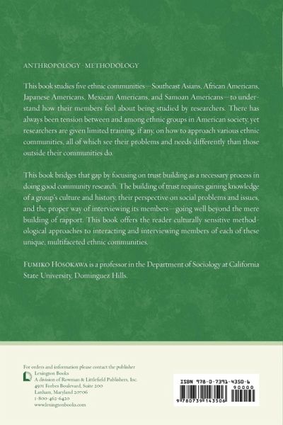 This book studies five ethnic communities_South Asian Americans, African Americans, Japanese Americans, Mexican Americans, and Samoan Americans_to understand how their members feel about being studied by researchers. Focusing on trust-building as a necessary process in doing good community research, this book offers the reader culturally sensitive methods to approach interaction and interviewing members of each of these unique, multifaceted ethnic communities.