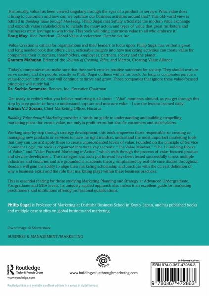 Working step-by-step through strategy development, this book empowers those responsible for creating or managing new products or services to have the right mindset, understand the most important marketing tools that they can use and apply these to create unprecedented levels of value. Founded on the principle of Service Dominant Logic, the book is organized into three key sections: "The Value Mindset," "The 12 Building Blocks of Value," and "Value-Focused Marketing in Action," which walk through the process of value-focused product and service development. The strategies and tools put forward have been tested successfully across multiple industries and countries and are grounded in academic theory, emphasized by real-life case studies throughout. Readers will gain the ability to align their marketing scholarship and practices with the current definition of why a business exists and the role that marketing plays within these business practices.