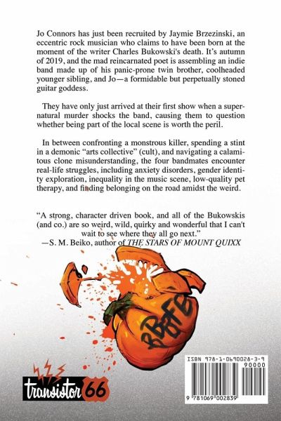 Jo Connors has just been recruited by Jaymie Brzezinski, an eccentric rock musician who claims to have been born at the moment of the writer Charles Bukowski's death. It's autumn of 2019, and the mad reincarnated poet is assembling an indie band made up of his panic-prone twin brother, coolheaded younger sibling, and Jo-a formidable but perpetually stoned guitar goddess. They have only just arrived at their first show when a supernatural murder shocks the band, causing them to question whether being part of the local scene is worth the peril. In between confronting a monstrous killer, spending a stint in a demonic "arts collective" (cult), and navigating a calamitous clone misunderstanding, the four bandmates encounter real-life struggles, including anxiety disorders, gender identity exploration, inequality in the music scene, low-quality pet therapy, and finding belonging on the road amidst the weird.