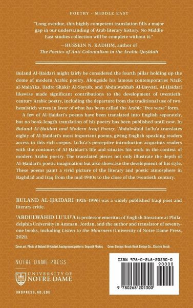 In this brilliant book, ¿Abdulw¿¿id Lu'lu'a translates and introduces eighty poems from one of the pioneers of modern Arabic poetry, Buland Al-¿aidari. Buland Al-¿aidari might fairly be considered the fourth pillar holding up the dome of modern Arabic poetry. Alongside his famous contemporaries N¿zik al-Mal¿'ika, Badre Sh¿kir Al-Sayy¿b, and 'Abdulwahh¿b Al-Bayy¿ti, Al-¿aidari likewise made significant contributions to the development of twentieth-century Arabic poetry, including the departure from the traditional use of two-hemistich verses in favor of what has been called the Arabic "free verse" form. A few of Al-¿aidari's poems have been translated into English separately, but no book-length translation of his poetry has been published until now. In Buland Al-¿aidari and Modern Iraqi Poetry, ¿Abdulw¿¿id Lu'lu'a translates eighty of Al-¿aidari's most important poems, giving English-speaking readers access to this rich corpus. Lu'lu'a's perceptive introduction acquaints readers with the contours of Al-¿aidari's life and situates his work in the context of modern Arabic poetry. The translated pieces not only illustrate the depth of Al-¿aidari's poetic imagination but also showcase the development of his style, from the youthful romanticism of his first collection Clay Throb (1946) to the detached pessimism of his Songs of the Dead City (1951). Selections are also included from his later collections Steps in Exile (1965), The Journey of Yellow Letters (1968), and Songs of the Tired Guard (1977). These poems paint a vivid picture of the literary and poetic atmosphere in Baghdad and Iraq from the mid-1940s to the close of the twentieth century.