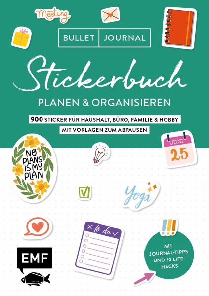 In diesem wunderbaren Stickerbuch aus dem EMF Verlag findest du zahlreiche Sticker zur organisation und Planung. Von Haushalt, über Büro, Familie und Freizeit. Darüber hinaus bietet das Buch 20 Lifehacks und zahlreiche Journal-Tipps!