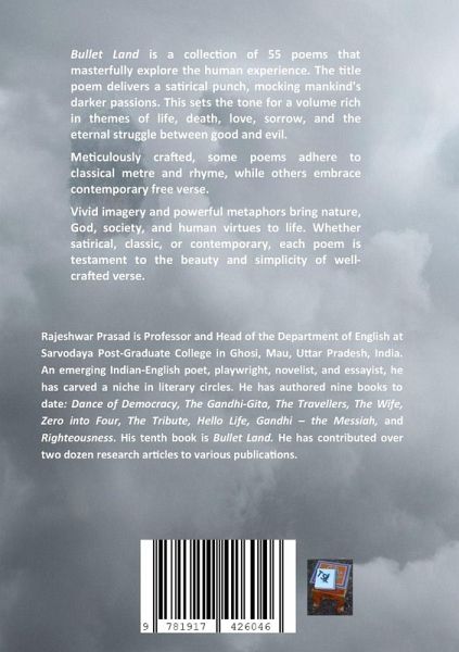 Bullet Land is a collection of 55 poems that masterfully explore the human experience. The title poem delivers a satirical punch, mocking mankind's darker passions. This sets the tone for a volume rich in themes of life, death, love, sorrow, and the eternal struggle between good and evil. Meticulously crafted, some poems adhere to classical metre and rhyme, while others embrace contemporary free verse. Vivid imagery and powerful metaphors bring nature, God, society, and human virtues to life. Whether satirical, classic, or contemporary, each poem is testament to the beauty and simplicity of well-crafted verse.