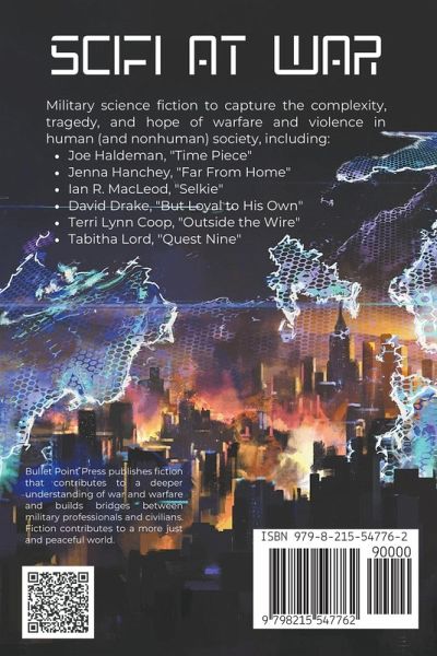 Read stories that capture the complexity, tragedy, and hope of warfare and violence in human (and nonhuman) society. The Bullet Points anthology offers classic stories alongside stories from up-and-coming authors, including:Joe Haldeman, "Time Piece" David Drake, "But Loyal to His Own" Jenna Hanchey, "Far From Home" Eric Fomley, "Input: Memories" Tabitha Lord, "Quest Nine" Ian R. MacLeod, "Selkie" Rich Larson, "Ghost Girl" Shannon Fay, "Fight for the Stars" Pedro Iniguez, "The Last Great Film" And more... This is an anthology based on Bullet Points, a military fiction blog. Every year, the best stories from the blog are collected and published. Bullet Point Press publishes fiction that contributes to a deeper understanding of war and warfare and builds bridges between military professionals and civilians. We believe that fiction can contribute to a more just and peaceful world.