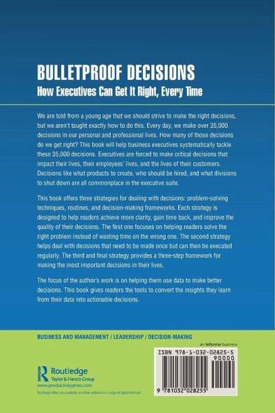 We are told from a young age that we should strive to make the right decisions, but we aren't taught exactly how to do this. Every day, we make over 35,000 decisions in our personal and professional lives. How many of those decisions do we get right? This book will help business executives systematically tackle these 35,000 decisions. Executives are forced to make critical decisions that impact their lives, their employees' lives, and the lives of their customers. Decisions like what products to create, who should be hired, and what divisions to shut down are all commonplace in the executive suite.