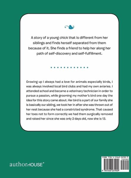 A story of a young chick that is different from her siblings and finds herself separated from them because of it. She finds a friend to help her along her path of self-discovery and self-fulfillment.