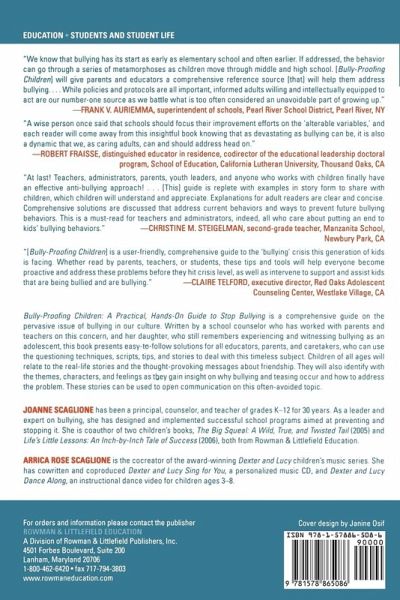 Bully-Proofing Children is a comprehensive guide for parents, teachers, and all caretakers on the often overlooked but pervasive issue of bullying in our culture. Parents and teachers will be able to use the questioning techniques, scripts, tips and stories for dealing with this timeless issue. Children of all ages will relate to the real-life stories and they will also identify with the themes, characters, and feelings as they gain an insight and understanding of why bullying and teasing occurs and that it has nothing to do with them.