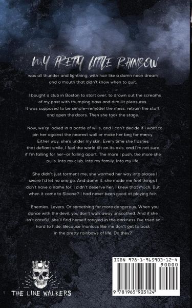 My Pretty Little Rainbow was all thunder and lightning, with hair like a damn neon dream and a mouth that didn't know when to quit. I bought a club in Boston to start over, to drown out the screams of my past with thumping bass and dim-lit pleasures. It was supposed to be simple-remodel the mess, retrain the staff, and open the doors. Then, she took the stage. Now, we're locked in a battle of wills, and I can't decide if I want to pin her against the nearest wall or make her beg for mercy. Either way, she's under my skin. Every time she flashes that defiant smile, I feel the world tilt on its axis, and I'm not sure if I'm falling for her-or falling apart. The more I push, the more she pulls. Into my club. Into my family. Into my life. She didn't just torment me; she wormed her way into places I swore I'd let no one go. And damn it, she made me feel things I don't have a name for. I didn't deserve her; I knew that much. But when it came to Sloane? I had never been good at playing fair. Enemies. Lovers. Or something far more dangerous. When you dance with the devil, you don't walk away unscathed. And if she isn't careful, she'll find herself tangled in the darkness I've tried so hard to hide. Because maniacs like me didn't get to bask in the pretty rainbows of life. Did they?