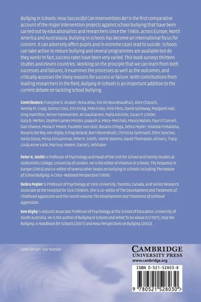 Bullying in Schools is the first comparative account of the major intervention projects against school bullying that have been carried out by educationalists and researchers since the 1980s, across Europe, North America and Australasia. Working on the principle that we can learn from success as well as failure, this book examines the processes as well as the outcomes, and critically assesses the likely reasons for success or failure. With contributions from leading researchers in the field, it is an important addition to the current debate on tackling this distressing problem.